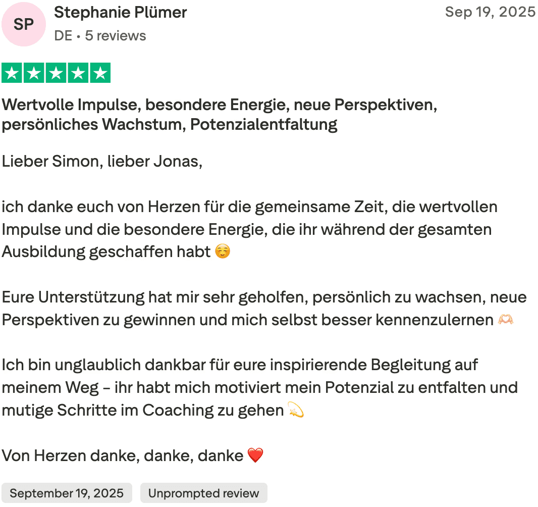 Bewirb dich jetzt für eine kostenlose Potenzialanalyse. Wir schauen gemeinsam, ob Coach sein, das richtige für dich ist.